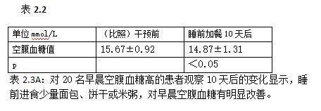 在每天容易饥饿的时间提前半个小时吃一点主食,包括面包,反而有利于血糖平稳。屡试不爽。睡前少量进食谷物,可视为对凌晨前出现睡中饥饿的预防,是另一种形式的先饥而食。根据聂文涛的的抽样调查数据,聂文涛对这两种先饥而食的情况进行了观察,基本数据如下: