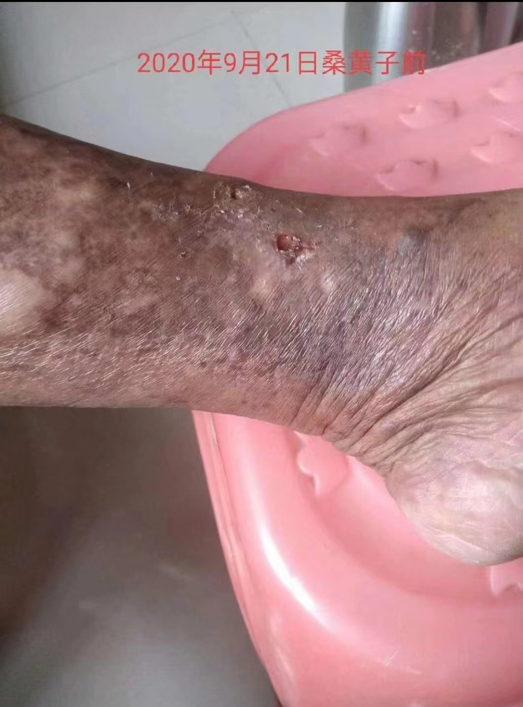 输入信息内容茂名林姨、糖尿病40年,血糖忽高忽低,不稳定。严重并发症,双脚下肢循环障碍,脚与小腿有多个小疮口,不能瘉合,双脚发黑。2020年9月19日找到聂文涛健康管理中心,聂文涛医生弟子用桑黄子5粒打粉敷伤口,外用高度酒泡桑黄子子50粒每天涂抹整条腿。内服桑黄子每天30片。内服外用30天后,2020年10月19日疮口变小结痂,胃口比原来好.所有疮口已痊愈,腿部黑色也变少变淡了。桑黄子大大提高了人体的自我修复能力,从根本上解决了糖友们的代谢问题、并发症问题!